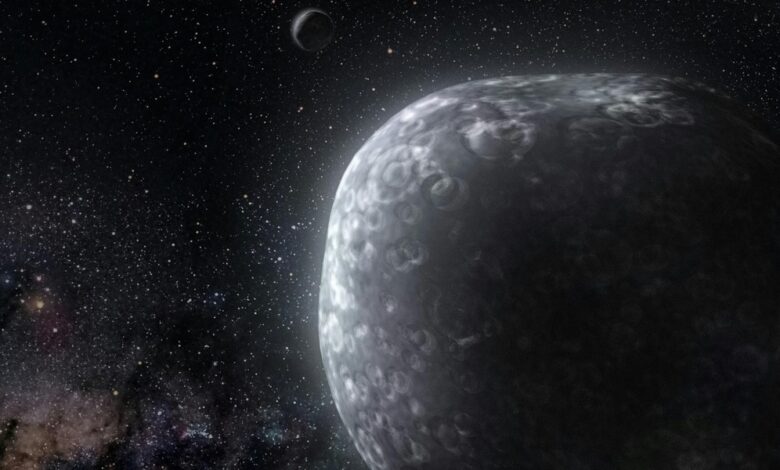Spacecraft concept near a Kuiper Belt object, illustrating resource potentialSpacecraft concept near a Kuiper Belt object, illustrating resource potential